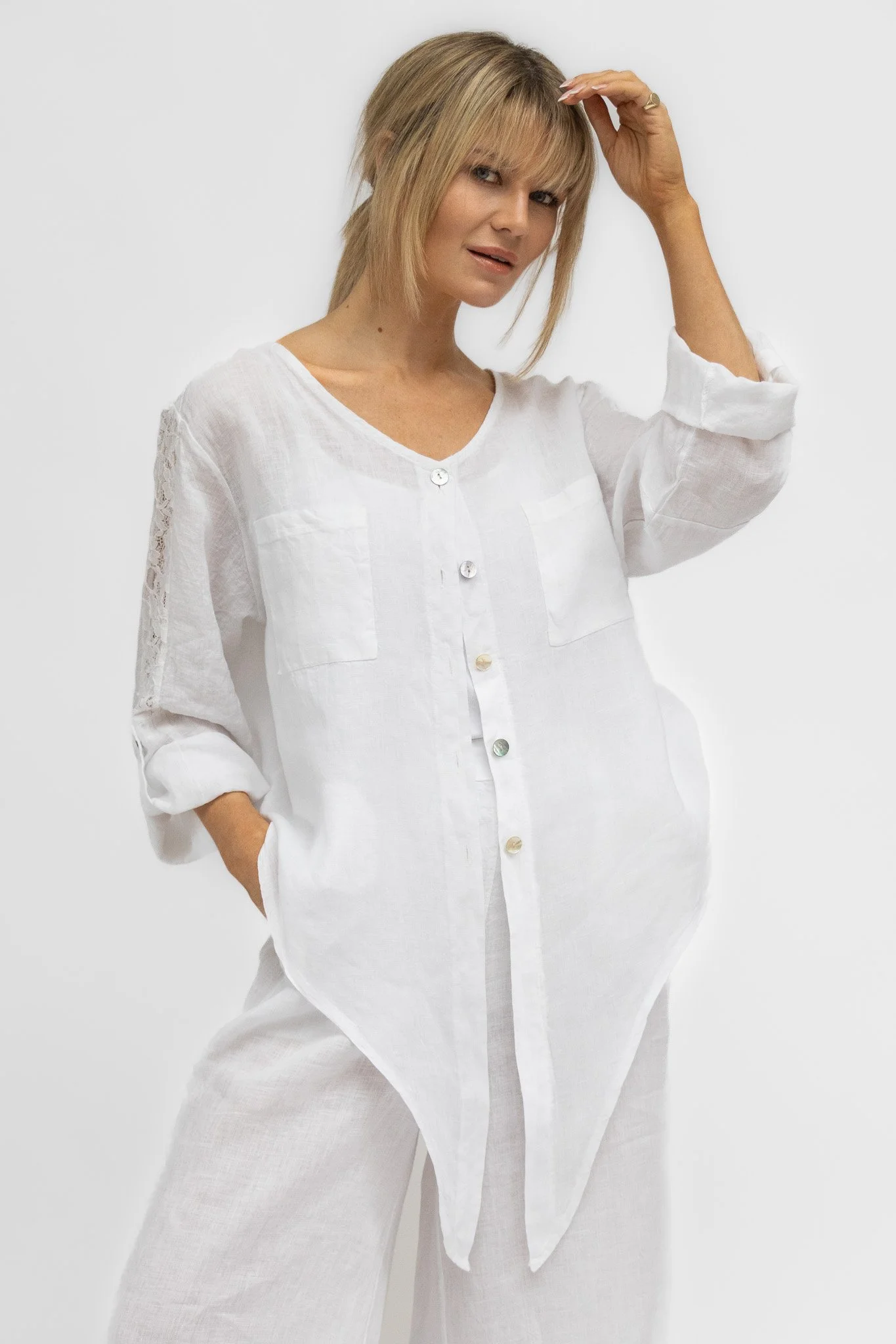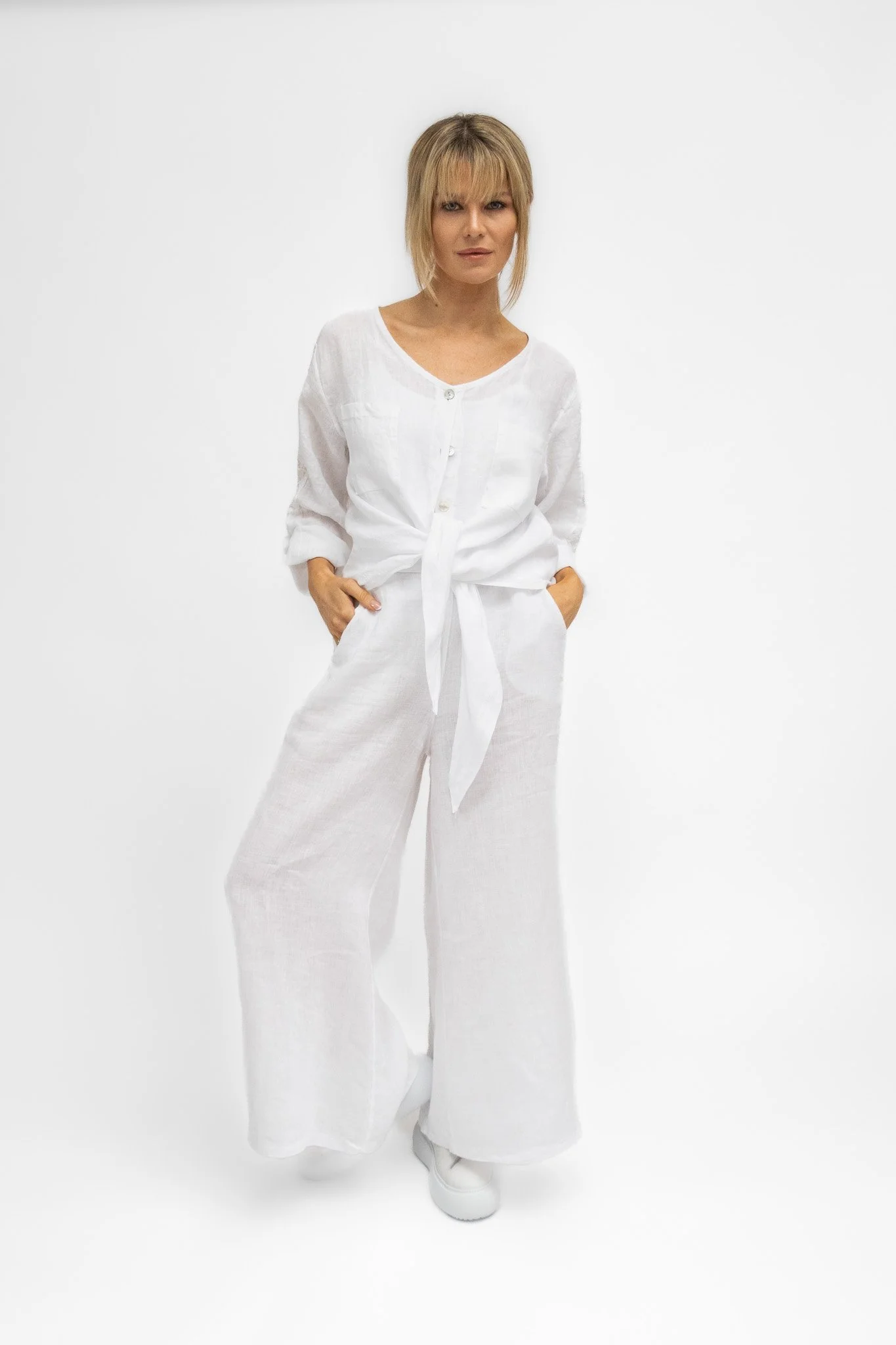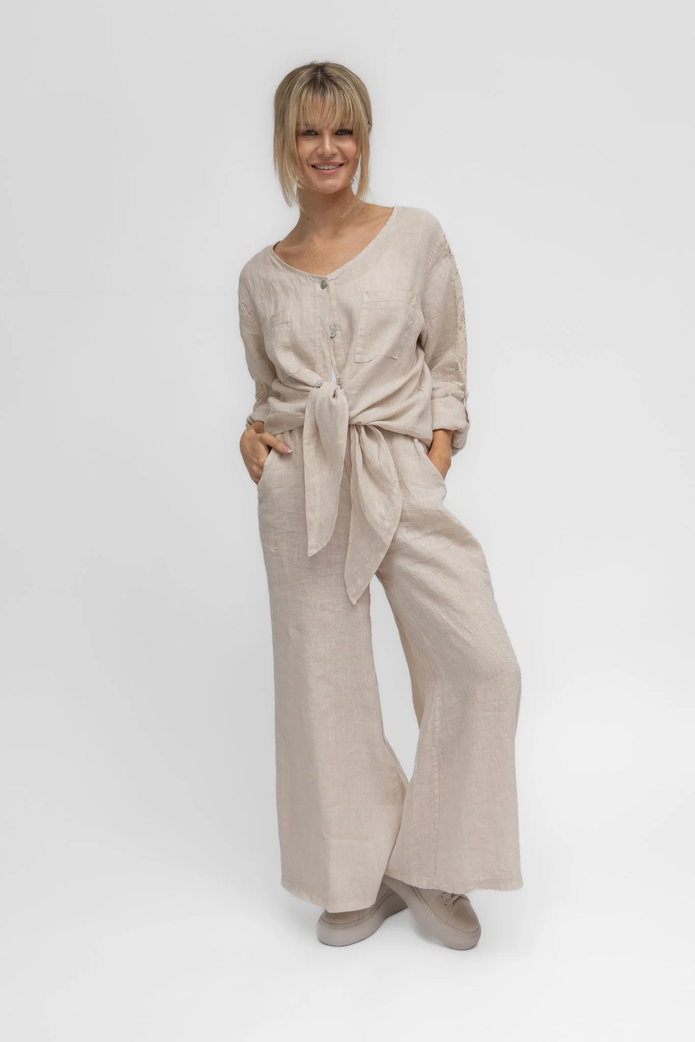 Linen stands out as a beloved summer staple, and this collection epitomizes luxury with its exclusive 100% linen pieces and versatile mix-and-match options.